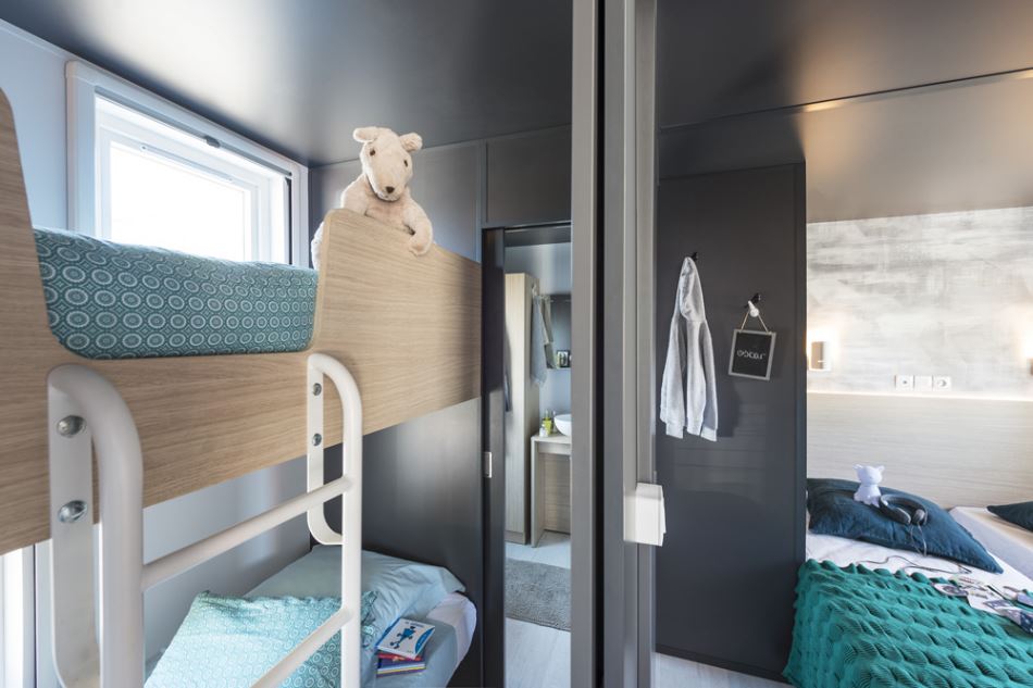 Chambre n°2 et n°3 : 2 lits simples (80×190) superposés et/ou côte à côte, oreillers et couettes fournis.